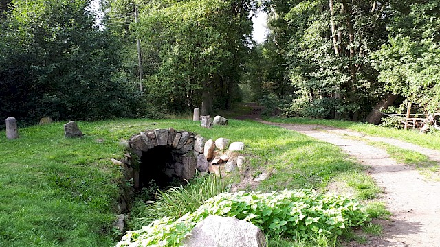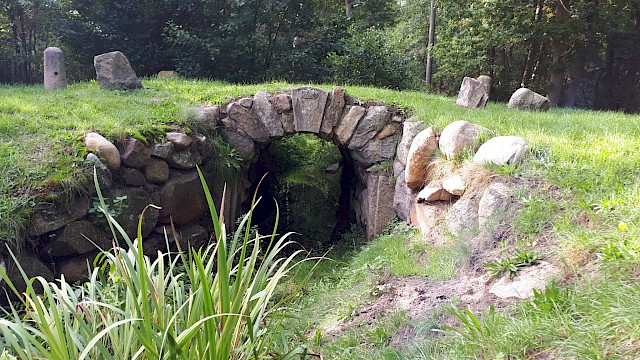 Die Welfenbrücke wurde 1777 als einbogige Granitbrücke erbaut. Im Kopfstein sind eine Krone und die Initialen G R zu erkennen. Sie stehen für Georg Rex, König Georg III von England und Kurfürst von Hannover.