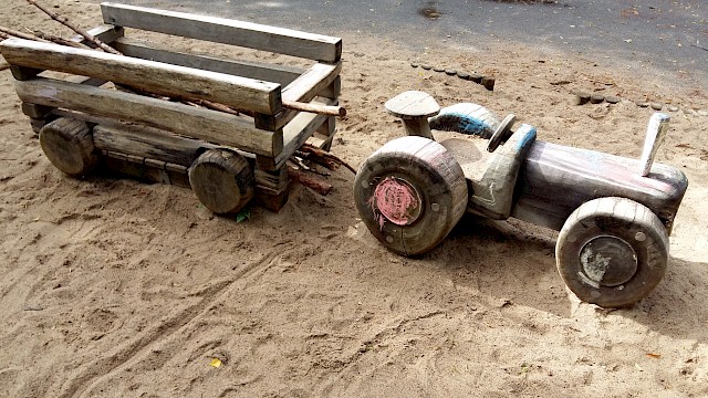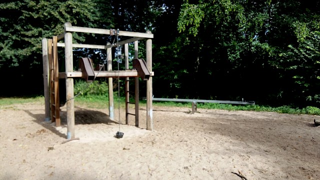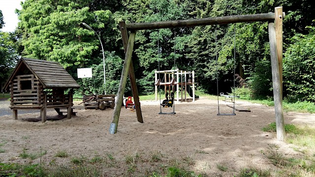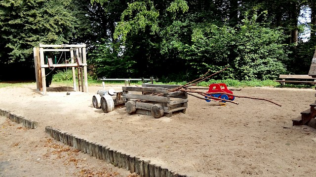 Direkt am Gemeindetreff Waldschule liegt dieser Spielplatz. Besonders der Holztrecker mit Anhänger begeistert die kleinen Besucher. Ein Spielhäuschen, Schaukel, Klettergerüst mit Sandspiel und Wipptiere runden das Angebot ab.