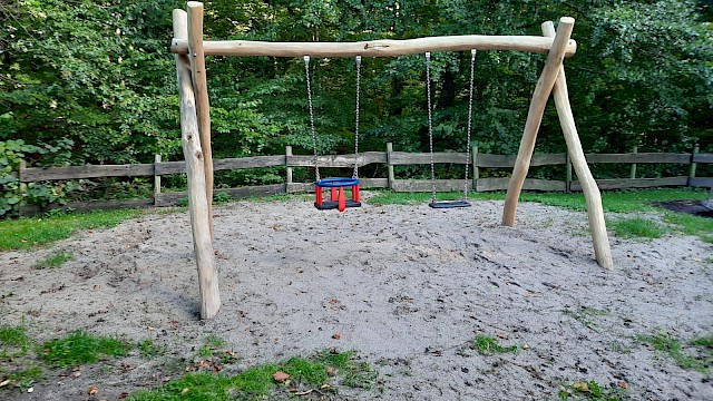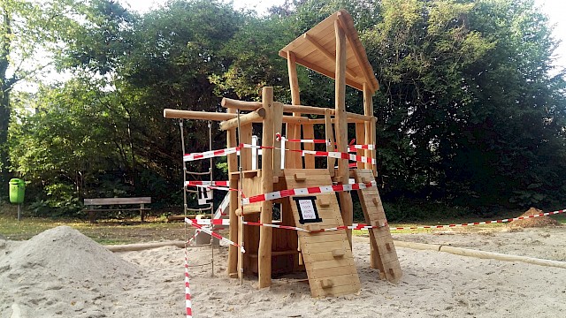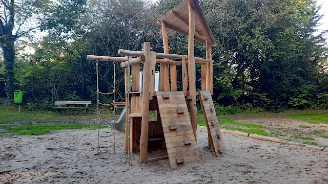 Das alte Klettergerüst wurde abgebaut, da es abgespielt war. Im Herbst 2022 wurde ein neuer Spielturm mit Rutsche, Klettermöglichkeiten und kleinem Häuschen errichtet und kann nun von den kleinen Gästen in Empfang genommen werden.