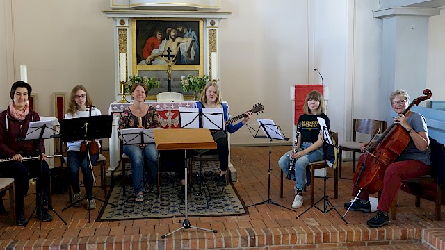 Im Instrumentalkreis der Kirchengemeinde spielen derzeit: 3 Flöten, eine Geige, eine Klarinette, ein Cello und ein Klavier.